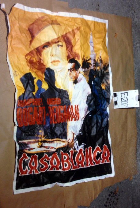 اهم و أول علامات ربط الفيديو بالجريمة التي يتم التحقيق فيها هو ملصق فيلم كازابلانكا المعلق وراء الضحية و الذي عثر عليه في القمامة كما ذكرت في تغريدة سابقة.