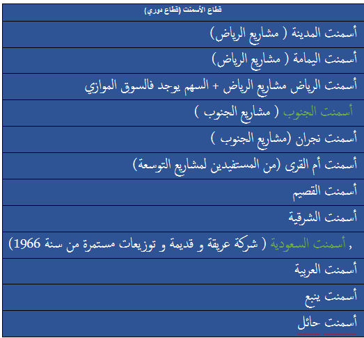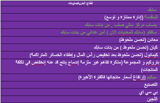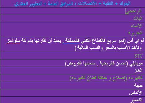قد وضعت ملاحظات بين أقواس لبعض الشركات والقطاعات لأخدها في عين الإعتبار