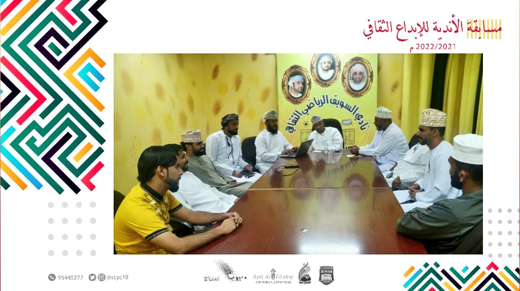 اللجنة الشبابية بنادي السويق تلتقي برؤساء اللجان الشبابية بالفرق الأهلية التابعة لنادي السويق ، و تستعرض مستجدات المرحلة الأولى من #مسابقة_الأندية_للإبداع_الثقافي 2021 / 2022م