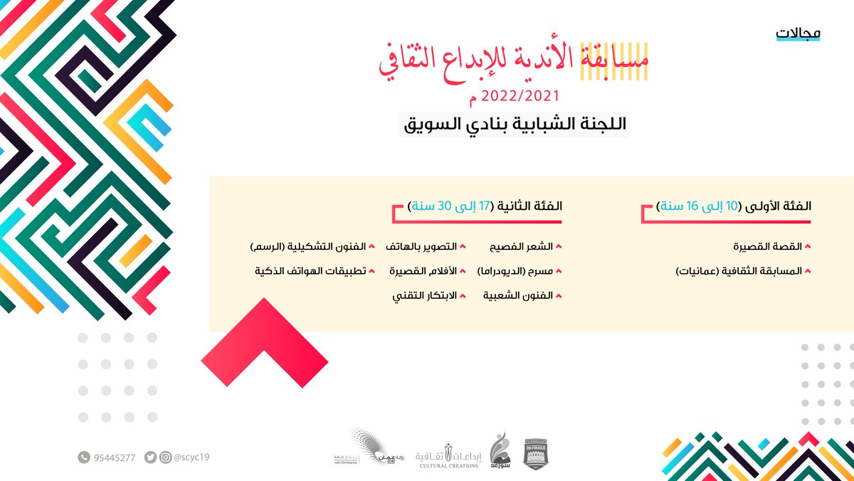 🇴🇲 تعرفوا معنا على مجالات مسابقة الأندية للإبداع الثقافي 2021 / 2022 م