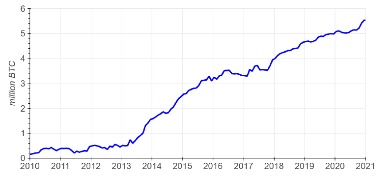 8. وأكبر ألف مستثمر يملكون حوالي 3 مليون بتكوين وأكبر 10 آلاف مستثمر يملكون حوالي 5 مليون بتكوين.