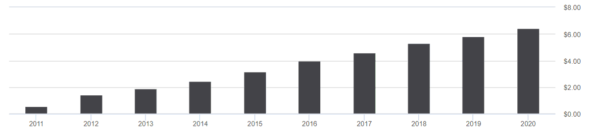 قيمة التوزيع السنوي (قبل الضرائب): 6$