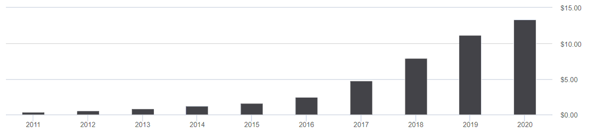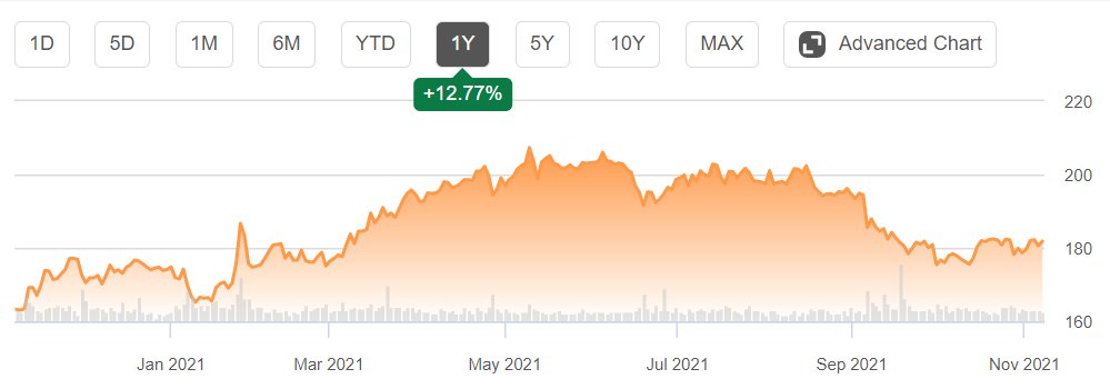 أداء السهم أخر عام: 12.8%