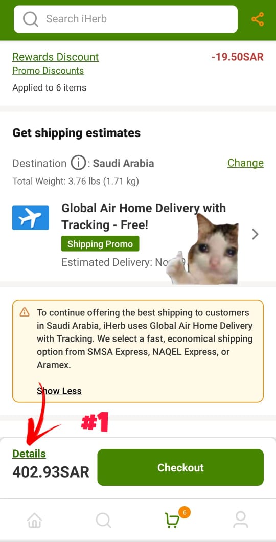 ايهيرب ما يقبل كودين خصم (لحد يضحك عليكم), في حالة ان الكودين حق ايهيرب ما يخصم لعدم إستوفاء الشروط, تقدروا تستخدموا كودي "CBM3956" يخصم 5%-10% بشكل دائم 💚