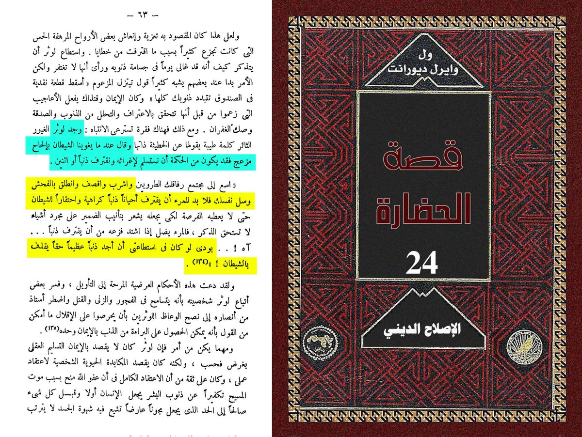ثم يقول : بودي لو كان باستطاعتي ان أجد ذنباً عظيماً حقاً يقذف بالشيطان!!