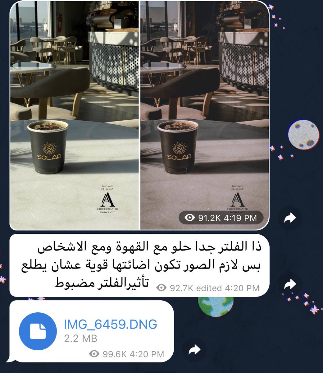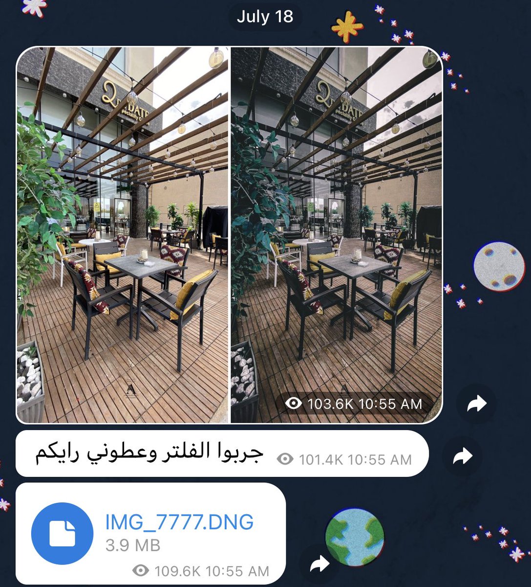 بعطيكم رابط قناة بالتيليقرام تنزّل تأثيرات جميلة جدًا وبعدها بشرح كيف تضيفون التأثير للتطبيق ويصير معكم على طول .. هذي القناة :
