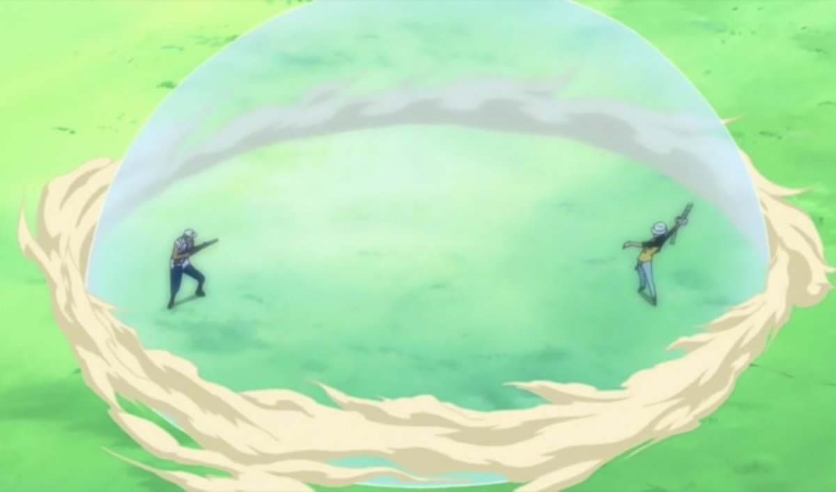 الجدير بالذكر انه هذا القتال كان بين اثنين من مستخدمين نوع فاكهة الباراميسيا ، لوفي ما يحتاج اذكر عنه شي لانه معروف