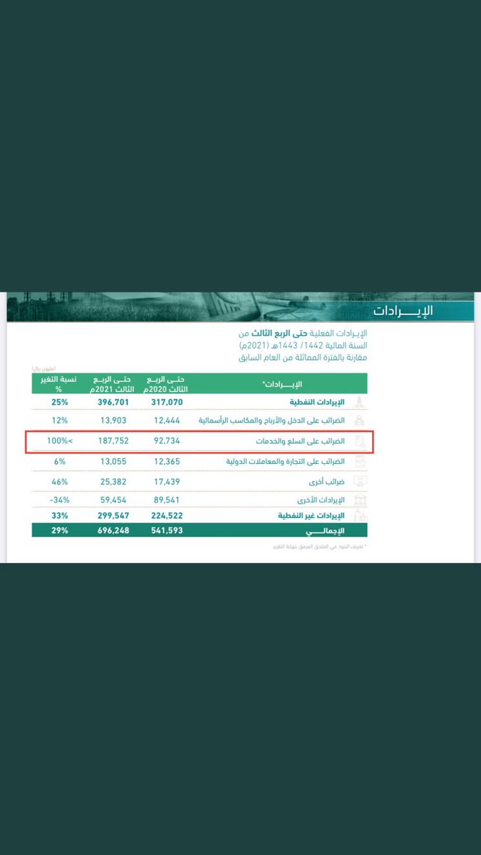 لتكون الامور واضحة : الدولة لاتثق بسعر النفط واذا قلنا لابد ايجاد بديل لأجل تخفيض ضريبة القيمة المضافة فهذا يعني دخل غير نفطي آخر فلا تعتقدوا أرتفاع سعر النفط هذه الفترة انه خلاص سنعود نعتمد على النفط هذه المرحلة انسوها تماما حتى لو وصل سعر النفط ١٠٠ دولار وحتى اذا حصل فوائض