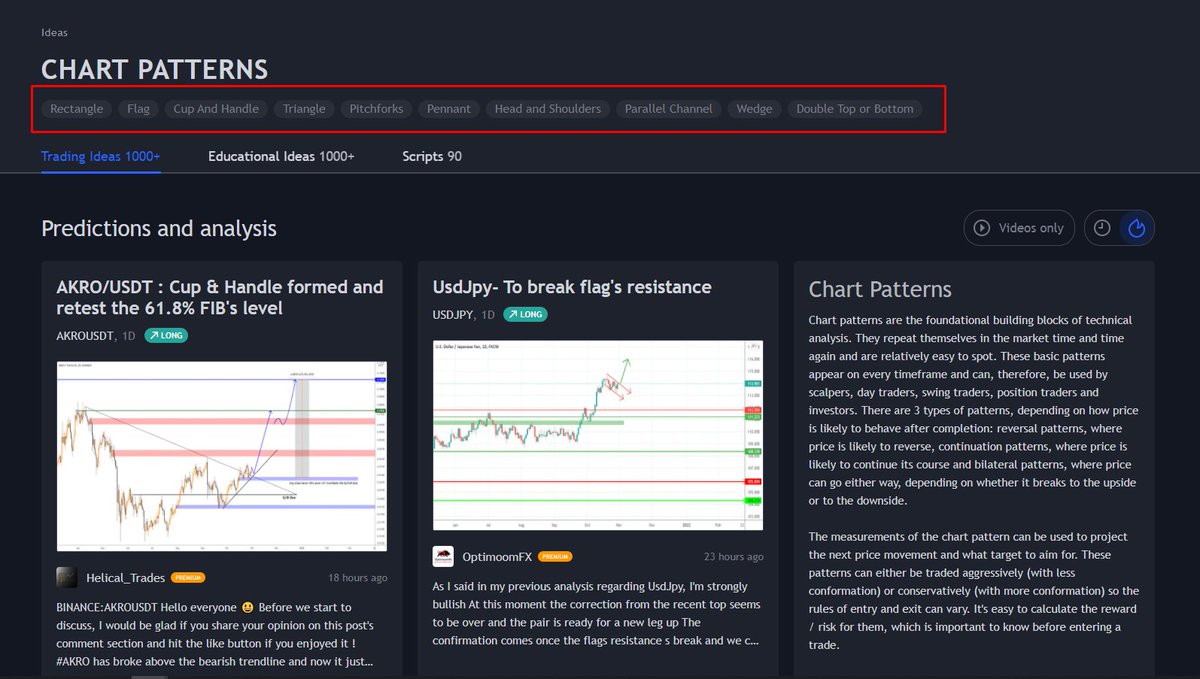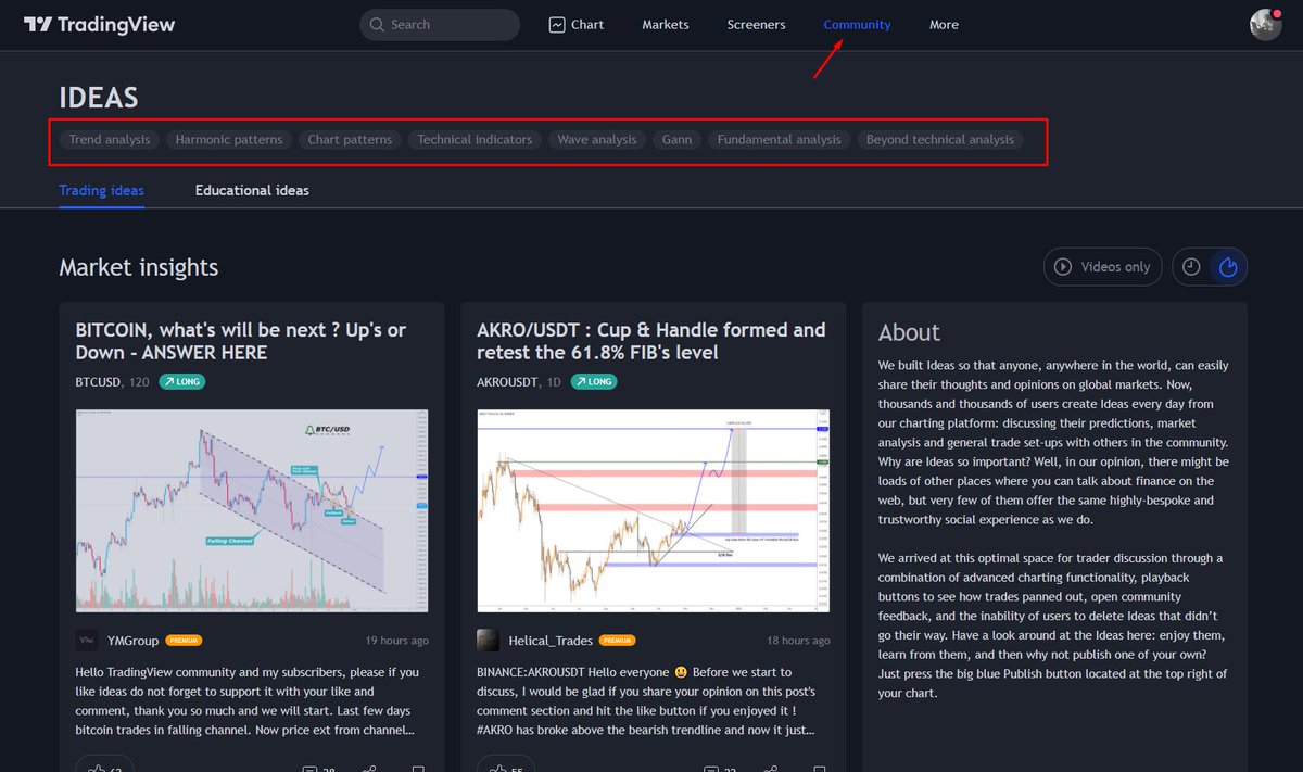 افضل مكان ممكن تشوف فيه الاف الامثلة من مئات المحللين هو موقع موقع Tradingview قسم Community.