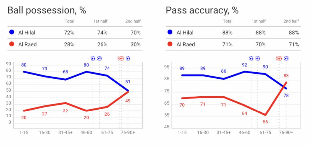 في موسم طويل وببدايته ادوار أقصائية في بطولة قارية طبيعي الفريق ما يوصل لأفضل حالاته بالذات ذهنياً وبدنياً ، لكن استمرار هالتفاصيل بالقادم سيجعل الهلال يعاني كثيراً ..