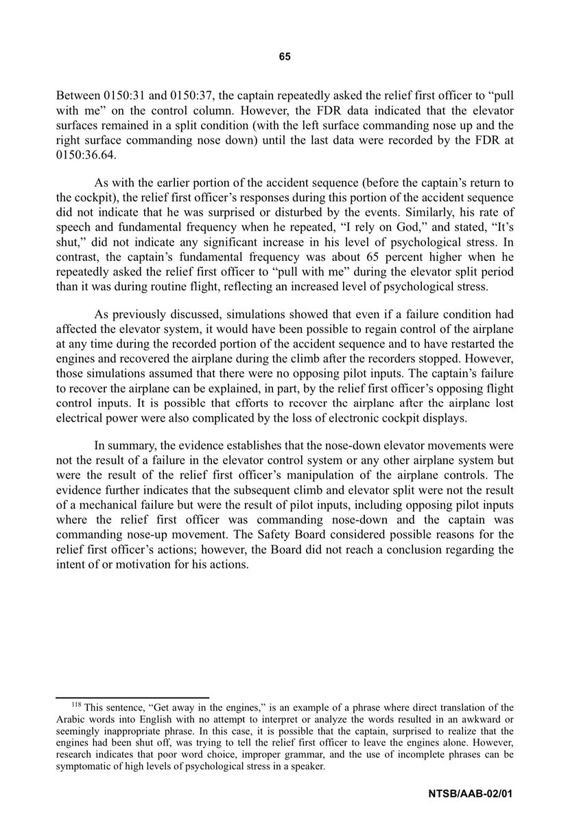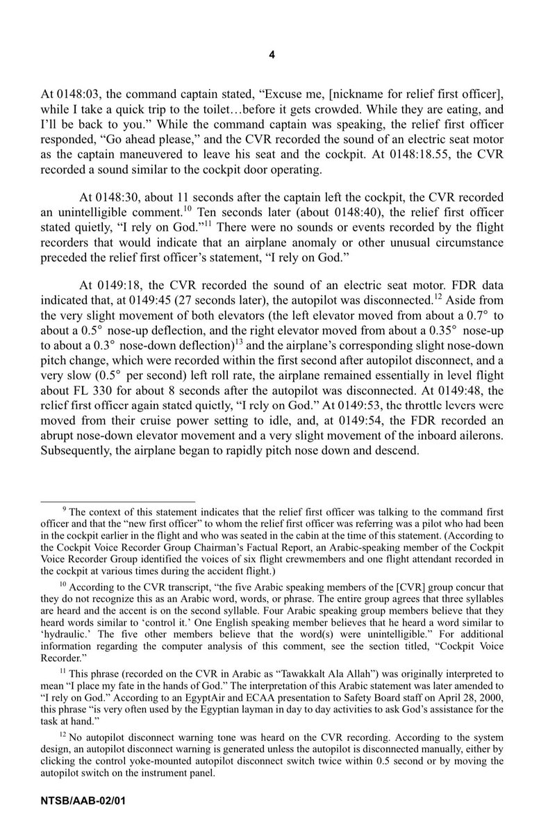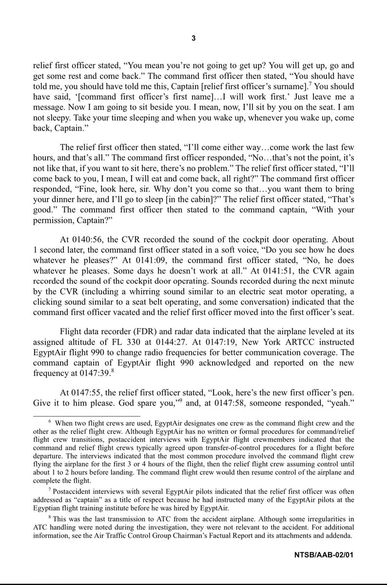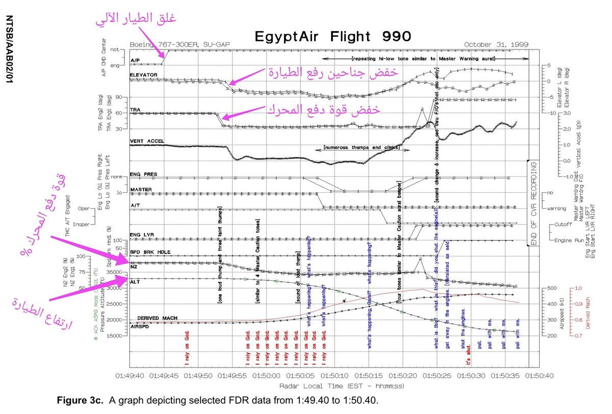 ٢٥- التقرير من صفحة 79-114 فيه التفريغ الكامل لكل المحادثات الصوتية في قمرة القيادة، وفيها تفاصيل بتبين بعض العشوائية والسبهللة والعشم والمشي بالبركة المتوطنين في الشخصية الشرقية.