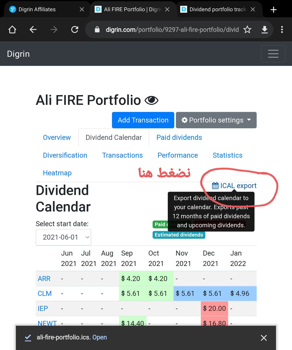 تفضل شرح مفصل لموقع يتيح لك متابعة اسهمك والتواريخ المهمة تجيك على الكالندر في جوالك 😁