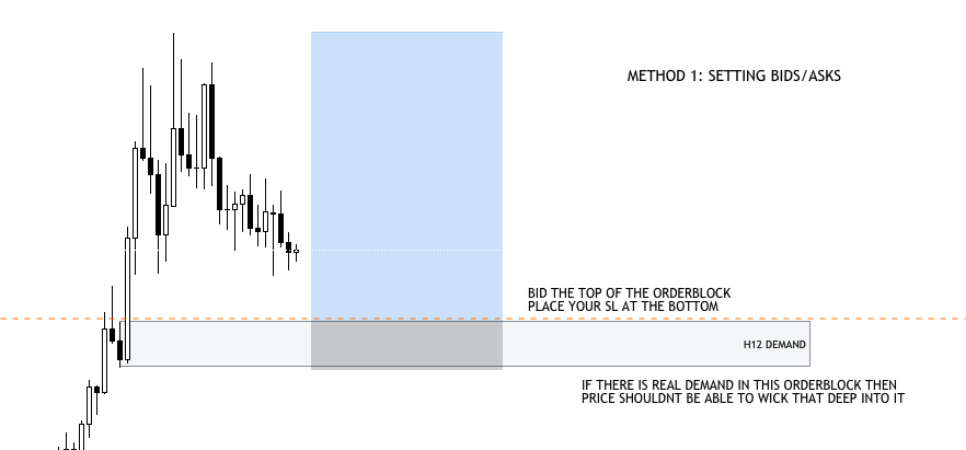 If price is coming near a demand OB after a retracement then you’d like to see a shift in structure in lower timeframes for you to bid the demand orderblock/breaker from where price rallied. Its utilizing method 1 but executing based on the reaction.