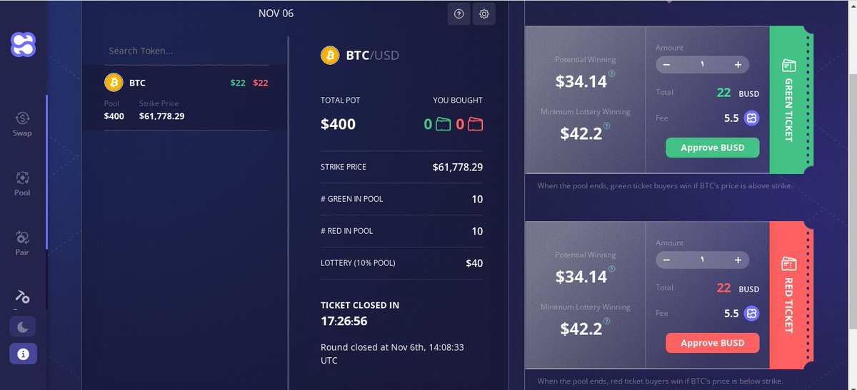 إذا قمت بشراء Green Tickets وكان سعر العملة في نهاية الجولة أعلى من Strike Price