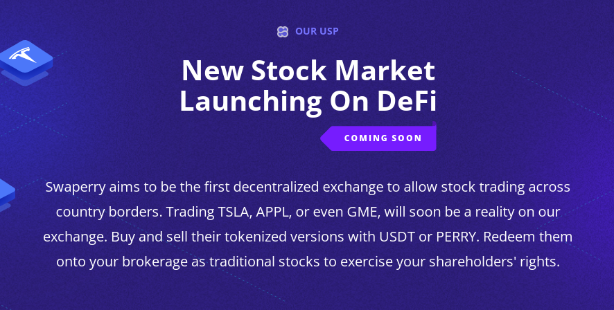 يمكنك تداول اسهم TSLA أو APPL أو GME داخل المنصة باستخد USDT أو PERRY