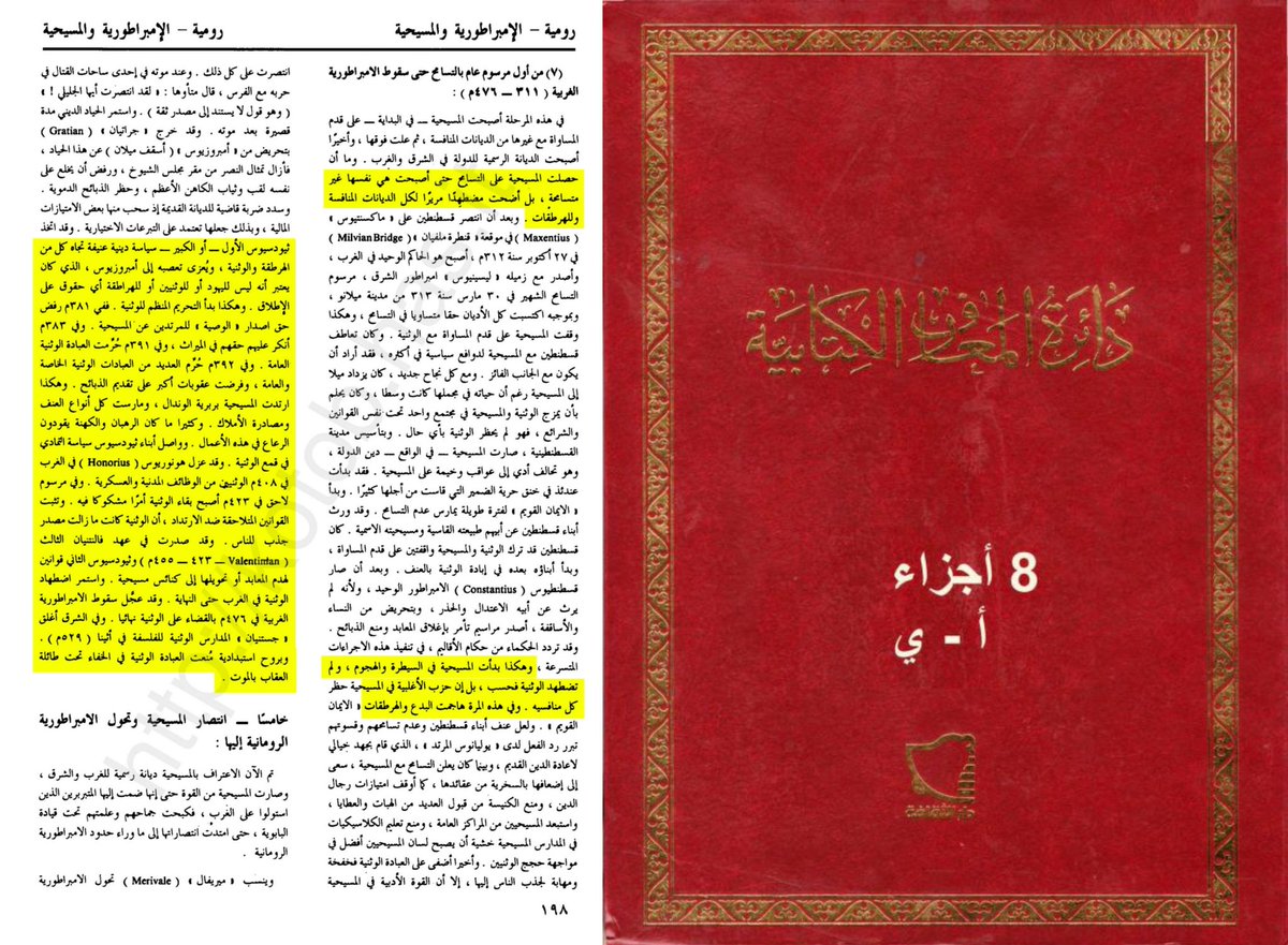"وأما الحقيقة المرة فهي أن كثيرين من أهل الرأي والحصافة قد #كرهوا المسيحية بسبب الحروب التي نشبت بين شيعها وأحزابها ....ومنذا بدا لهؤلاء العقلاء ذلك لجأوا إلى الإسلام فاعتصموا بأمنه واستظلوا بوداعته وطمأنينته وبساطته.