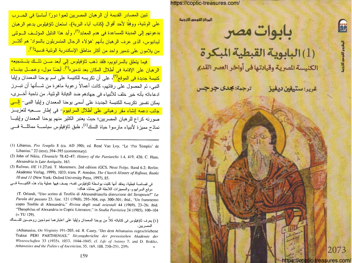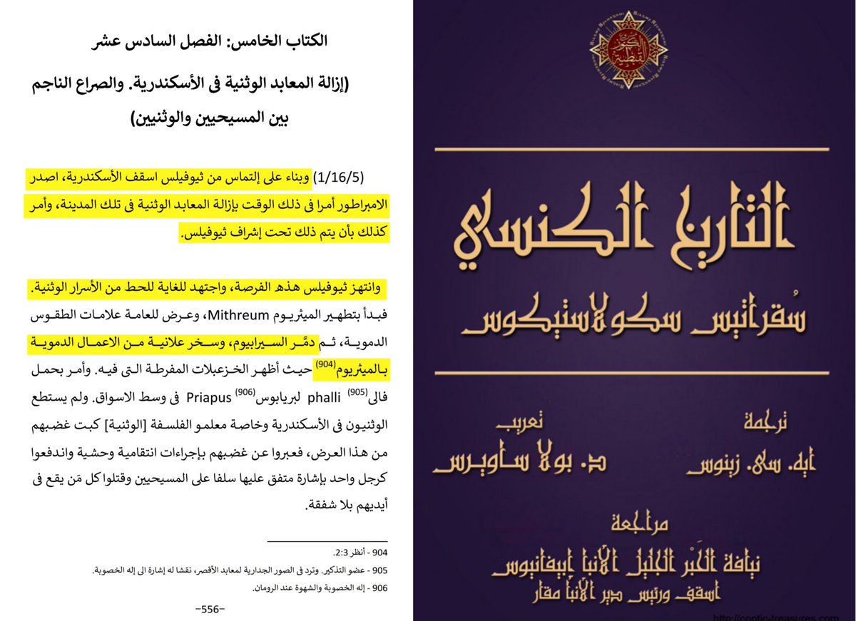 أن الإمبراطور أصدرصدر منشوراً عام ٣٨١م لجعل الديانة المسيحية هي الرسمية للمملكة ثم هُدمت المعابد الوثنية ففي روما وحدها هُدم أكثر من ٤٠٠ معبد ...كما صرّح البابا الإسكندري الأنبا ثاوفيلس بتحويل كافة معابد الأوثان في #مصر إلى كنائس.