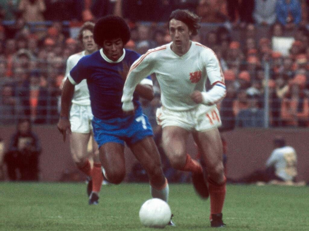 يوهان كرويف، الذي فرض ركلة الجزاء الشهيرة في الدقيقة الأولى بضربة جزاء مميزة تركت مراقبه بيرتي فوغتس للموت.
