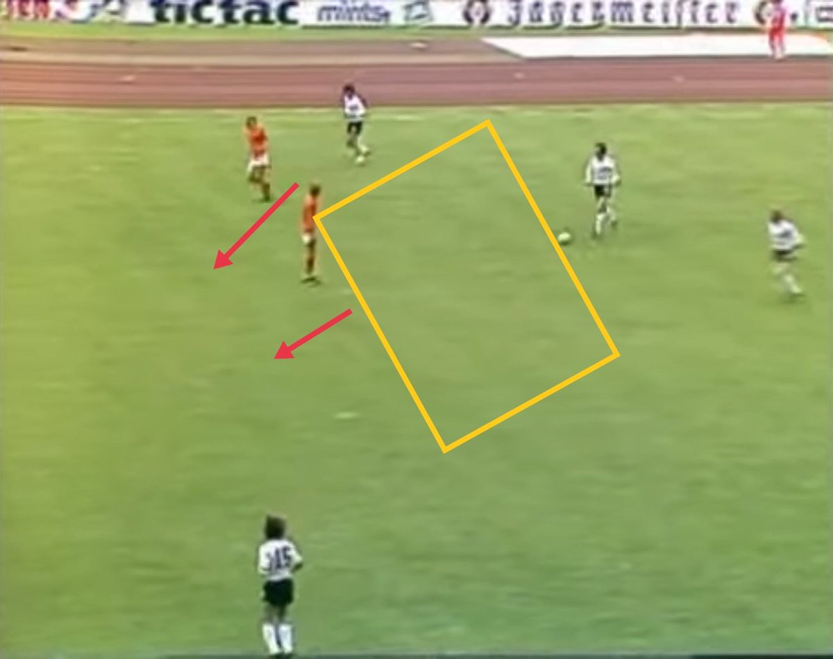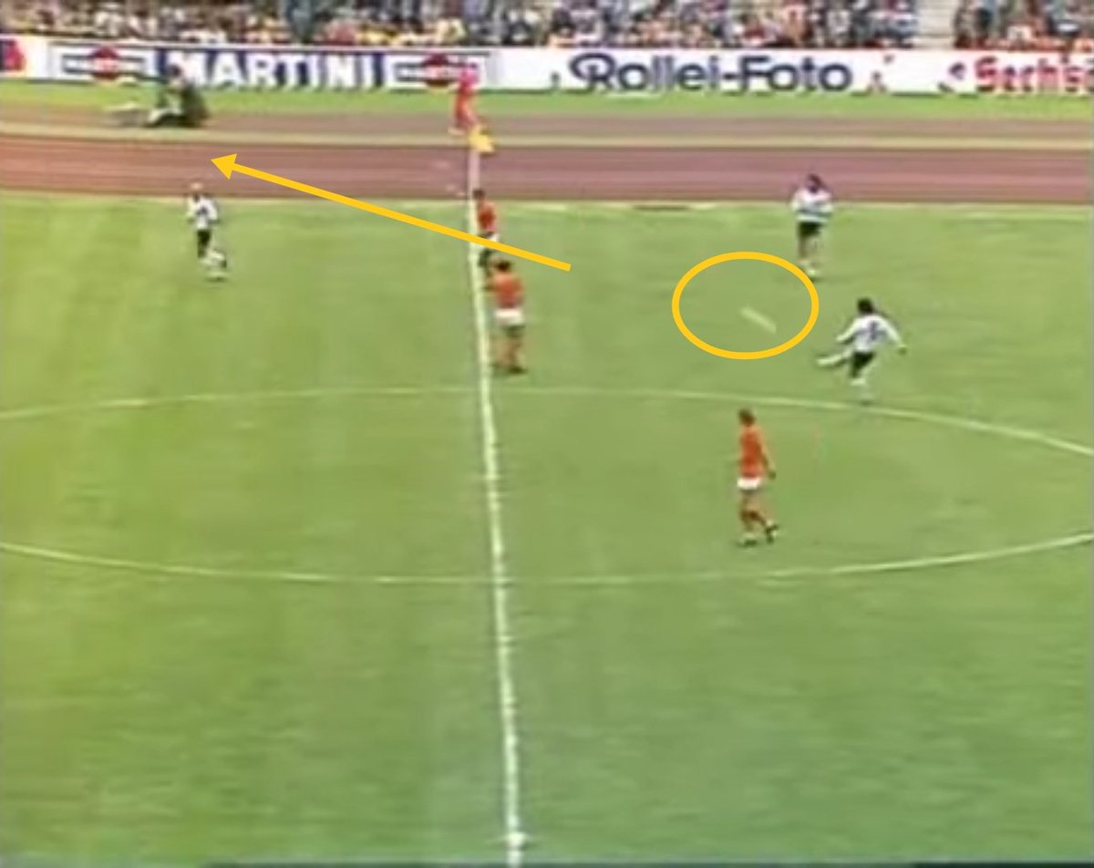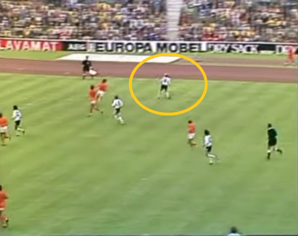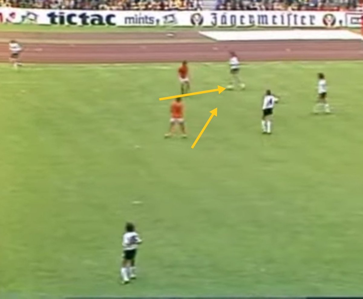 لكن في تلك المرحلة، كانوا متأخرين بنتيجة 2-1 بدلاً من التقدم، والآن كان الألمان الغربيون يجلسون بشكل أعمق ويسمحون للهولنديين بالهجوم عليهم. يصبح بيكنباور أقل تأثيرًا أيضًا.