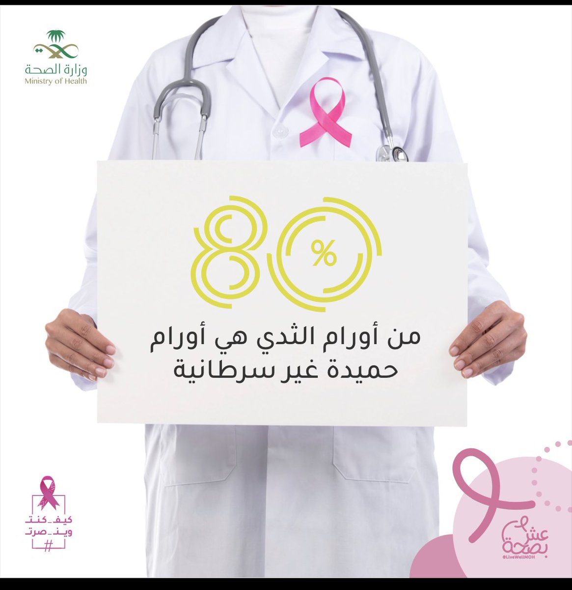 1️⃣سأتحدث اليوم بمناسبة نهاية شهر التوعيه بـ #سرطان_الثدي عن أورام الثدي، حيث تشكل نسبة كبيره من المراجعات للعيادات والتي يصاحبها عادة حالة من الهلع مخيفة لا تهدأ فيها السيده حتى يثبت لها الطبيب نوعها، و