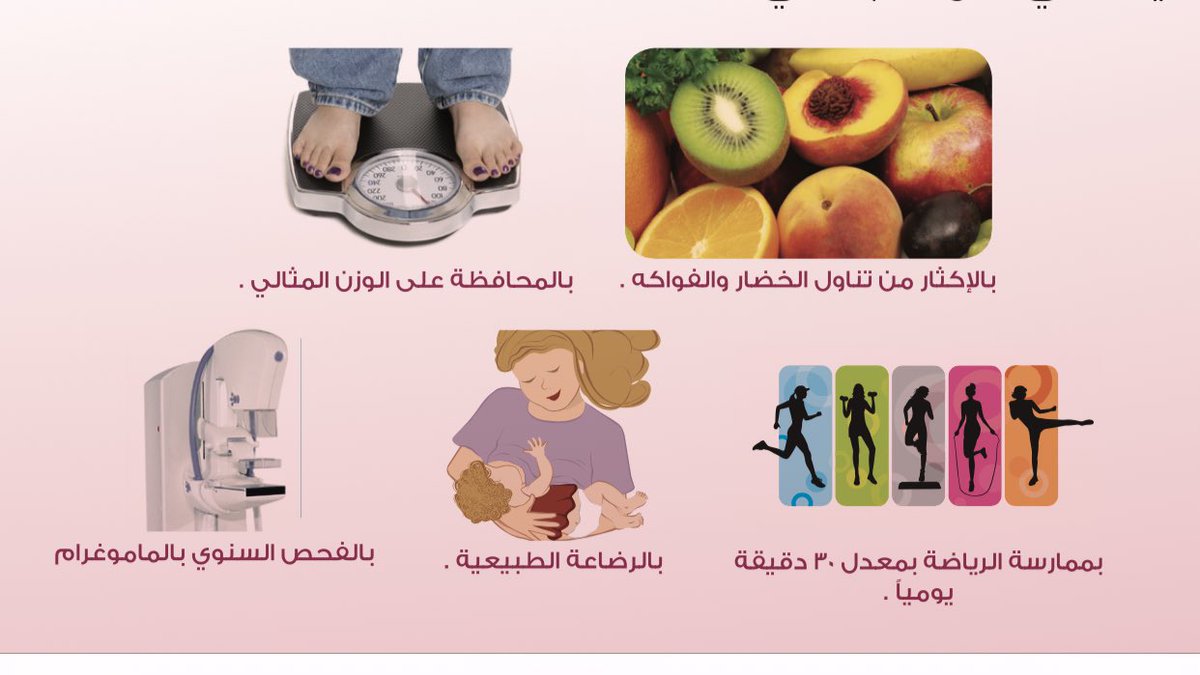 1️⃣9️⃣ ثانيا: المحافظة على وزن صحي وممارسة الرياضة والنشاط البدني باستمرار مثل الأنشطة الهوائية المتوسطة لا يقل عن 150 دقيقة أوالشاقة لمدة 75 دقيقة أسبوعيًّا وتذكري سيدتي أن زياده الوزن وخصوصا بعد انقطاع الطمث يزيد من نسبة الاصابه حيث تتولى الخلايا الشحميه أفراز هرمون الاستروجين