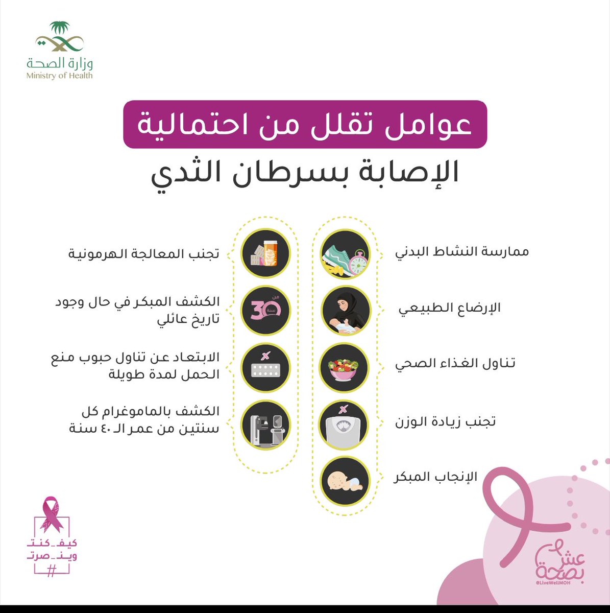 1️⃣7️⃣في نهايه هذه التغريده الطويلة والتي ارجو أن تكون واضحة لسيداتنا الفاضلات، أشدد على أهميه الوقايه والكشف المبكر للمرض.. وكما نعلم أن الجنس كأنثى والتقدم في العمر هو من عوامل الخطوره التي لانستطيع التحكم بها لكن هناك نصائح لابد اتباعها قد تقلل من نسبه الاصابه بالمرض وأهمها: