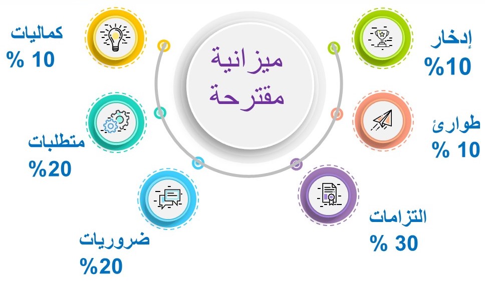 9- 10 % من دخلك إدخار ومثلها للطوارئ توضع في حساب مستقل .