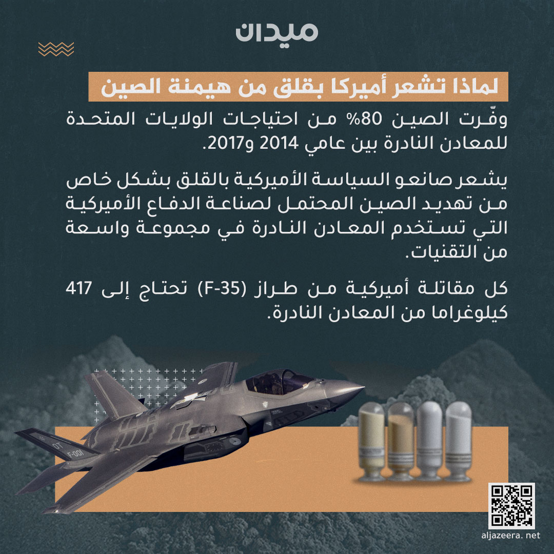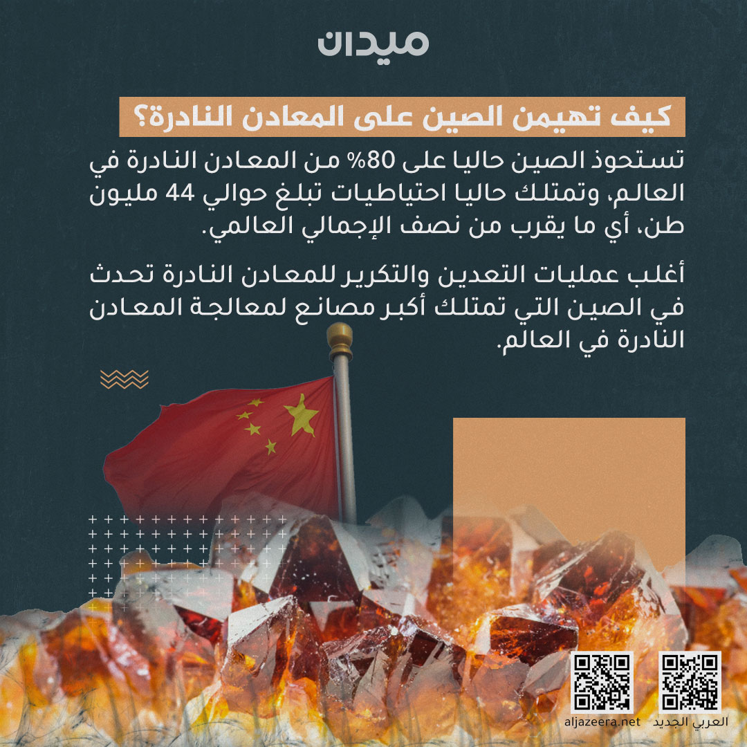 تستحوذ #الصين حاليا على 80% منها على مستوى العالم، وهي مجموعة من المعادن النادرة التي تستخرج من قشرة الأرض، وتكمن ندرتها في محدودية الأماكن التي تستخرج منها، وتدخل في جميع الصناعات، وتهدد الصين بشكل متكرر بحظر تصديرها.. فهل أخطأت الصين في استغلال المعادن النادرة كوسيلة ضغط سياسي؟