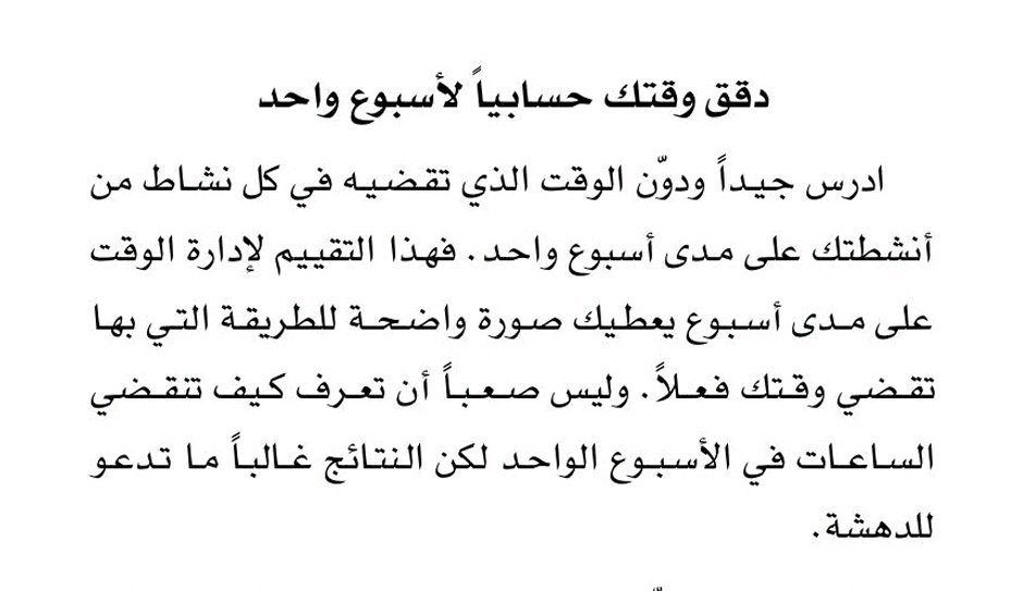 أفضل طريقة عشان تعرف وين يضيع وقتك هي انك تتبّعه لمدة اسبوع مثلا، اما يدويا بالورقة والقلم كما هو موضح في ال📸