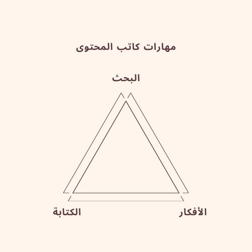 نستطيع أن نفهم من هذا المثلث بأن الكتابة ليست المهارة الوحيدة التي يجب أن تتعلمها في هذه العملية، بل تسبقها خطوتان [ البحث والفكرة ]