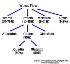 يحوي القمح ١٠ إلى ١٥٪ بروتين يشكل الجلوتين ٨٠٪ منه.