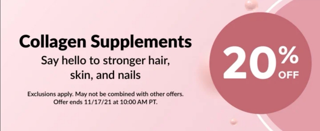 العرض الرابع, خصم 20% على جميع مكملات الكولاجين بالإضافة لخصم 5% زياده (يعني خصم 25%) بإستخدام الكود