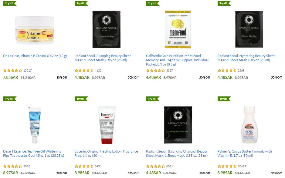 ودايماً قبل لا تطلبوا, قسم في ايهيرب اسمه "منتجات تجريبيه/Trial" تختاروا منتج واحد يكون بسعر رمزي جداً مثل 1$ او أكثر بشوي بغرض التجربه