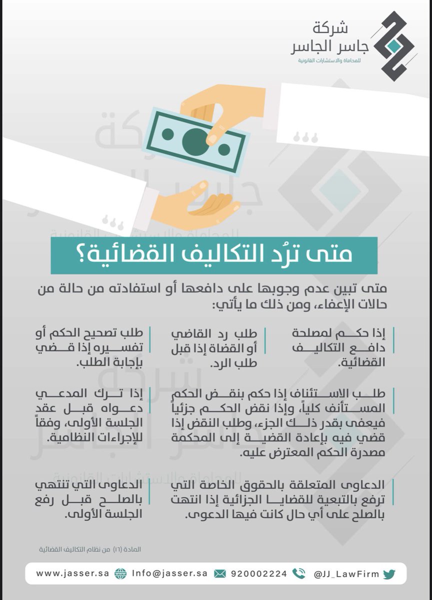 سلسلة تغريدات توضح أبرز ملامح #نظام_التكاليف_القضائية بطريقة مبسطة من خلال الصور