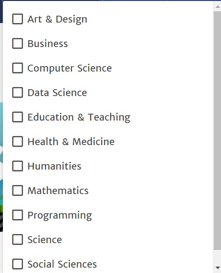 - تقدر تحدد مجالك من خلال الضغط على ايقونة Subject Area ومن خلالها راح تظهر قائمة بالتخصصات مثل ( أنظر الصورة)