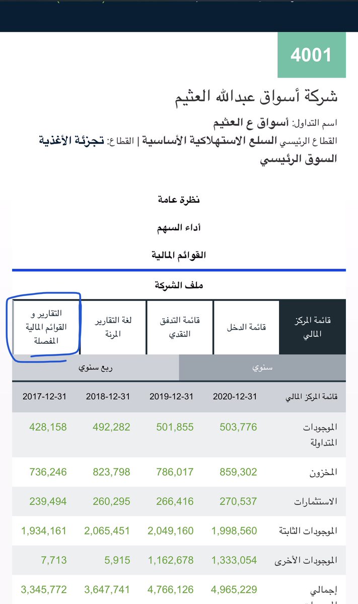 - شركة العثيم كمثال، تدخلون على القوائم المالية ثم التقارير والقوائم المالية المفصلة وتظهر لكم القوائم المالية للسنوات السابقة..