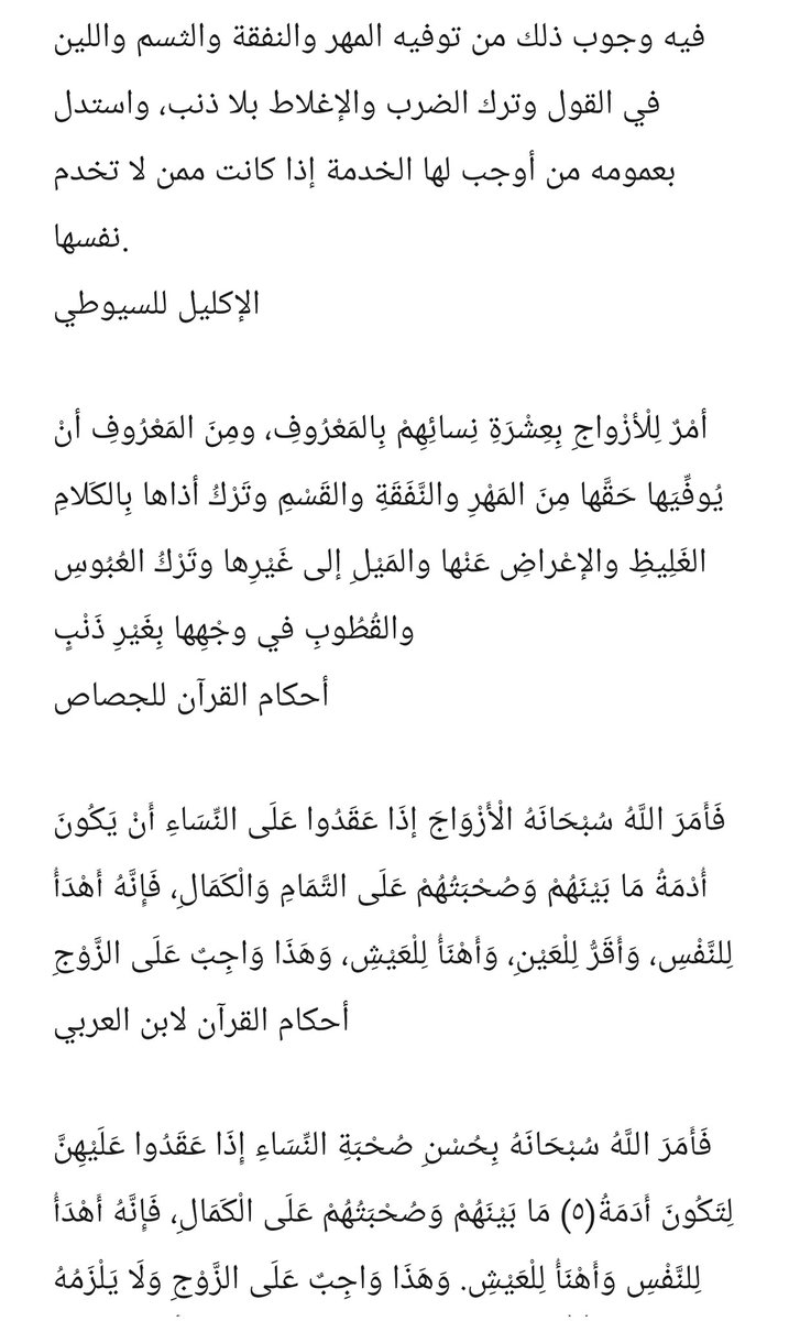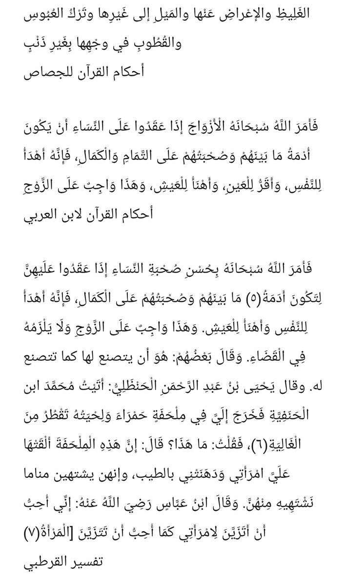 والإحسان إلى النساء فرض ولا يحل تتبع عثراتهن ، ولا يجمع بين امرأتين في مسكن إلا برضاهما لأن ذلك ليس من العشرة بالمعروف