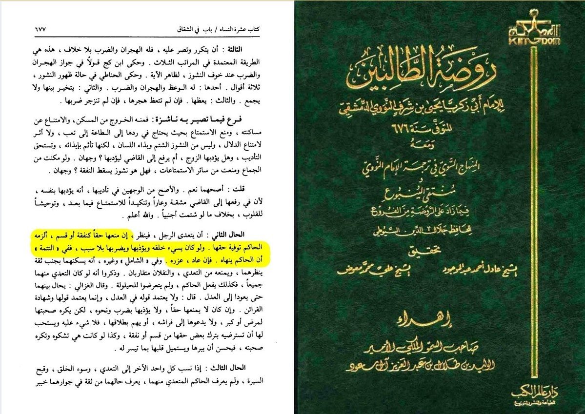 ولو كان يسيء خلقه ويؤذيها ويضربها بلا سبب ينهاه الحاكم فإن عاد عزره ، يجوز للحاكم إذا علم أن الأزواج لا يحسنون وضع العقوبات الشرعية في مواضعها ولا الوقوف عند حدودها أن يعاقب كل من ضرب زوجته كيلا يتفاقم أمر الإضرار بين الأزواج