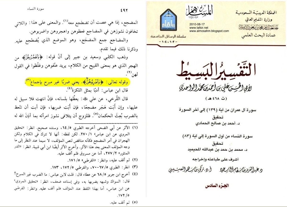 لا نحمل وأضربوهن الأفعال الخاطئة التي لا يقبلها الشرع وتستوجب القصاص والتعزير لأنه لو كانت واضربوهن السبب لما حصل ما حصل عند من لم يقرؤوها
