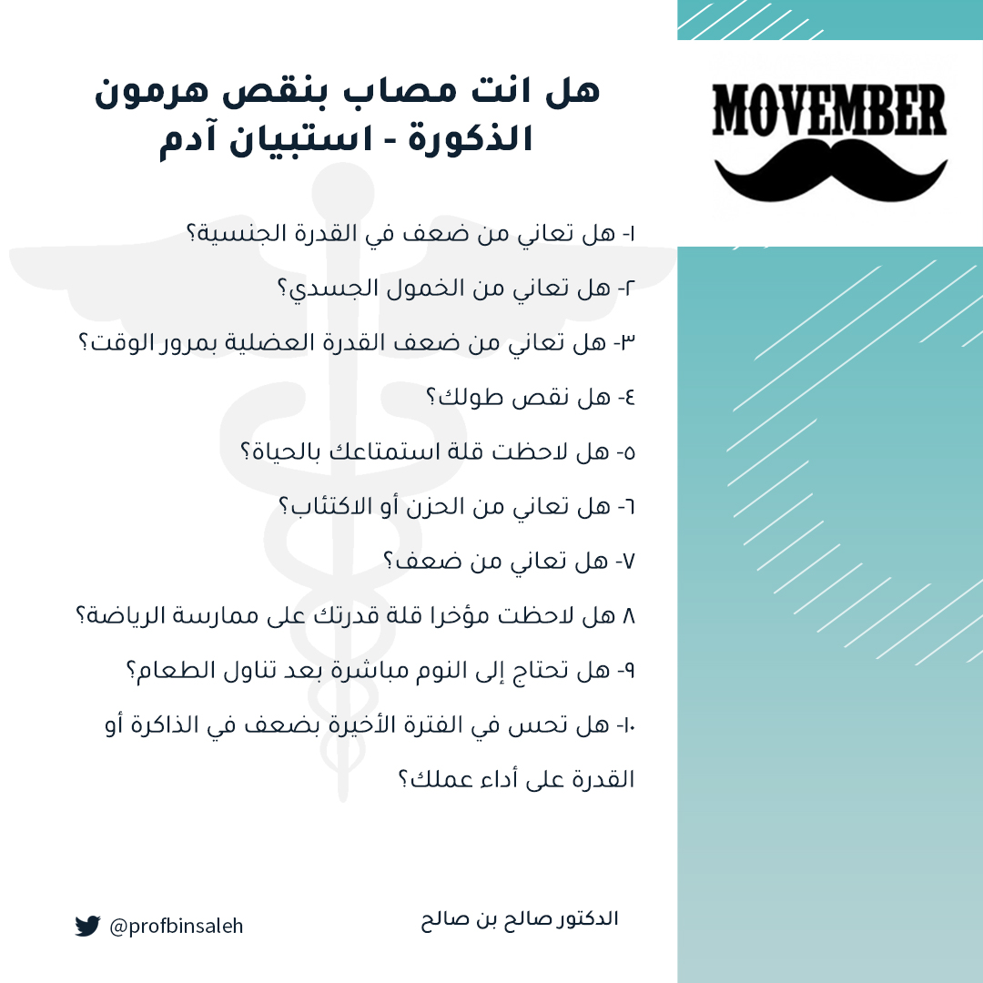اﺳﺘﺒﻴﺎن ادم: ﻳﺘﻜﻮن ﻫﺬا اﻻﺳﺘﺒﻴﺎن ﻣﻦ ١٠ أﺳﺌﻠﻪ ﻟﻠﻤﺴﺎﻋﺪة ﻋﻠﻰ ﺗﺸﺨﻴﺺ ﻧﻘﺺ ﻫﺮﻣﻮن اﻟﺬﻛﻮرة ﻟﺪى اﻟﺮﺟﻞ.