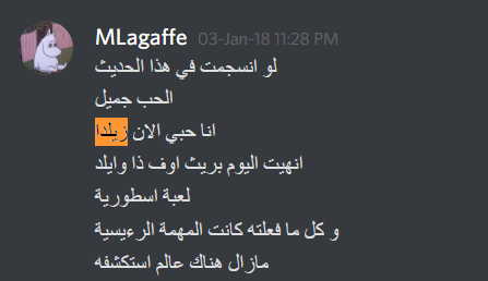 حصل لي الشرف أن أتعارف مع StriverFreedom و سباد و Simple و oblait مع تلك الفترة، في نقاشات أكثرها لا يمت بصلة للألعاب بل نناقش فيها التعريب مجردا، وغيره من المواضيع. رأينا في بعضنا أناسا لهم آراء قوية عن التعريب، وكان أن رافقوني مسيرة تعريب زيلدا BoTW، التي صارت جماعية بهم.