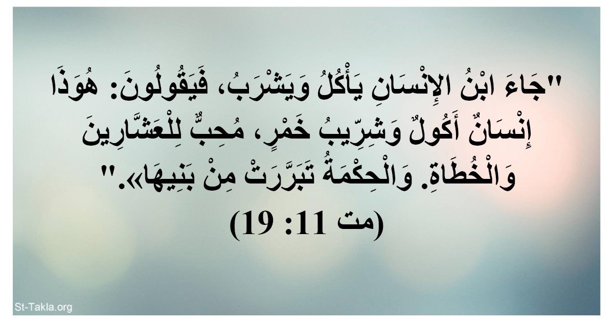 ١٩)فيقولون عن يسوع : هوذا انسان اكولٌ شريب خمر محب العشارين والخطاه
