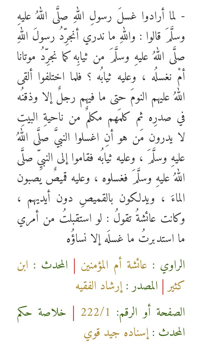 وقع الخلاف بينهم، لأنه أول مرة يموت بين أيديهم نبي، وليسوا كبني إسرائيل الذين كانوا يعيشون بينهم الأنبياء، وأحياناً أكثر من نبي في نفس الوقت، فيحسنون التعامل في هذه المواقف؛ فاختلفوا هل يجردونه من ثيابه أم لا، وفي النهاية غسّلوه في ثيابه عليه الصلاة والسلام.