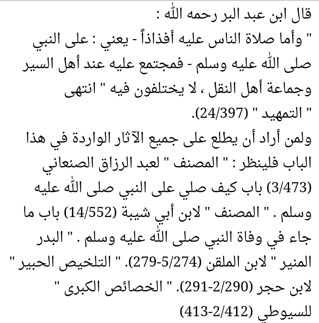 الرجال والنساء والأطفال (جميعهم) كانوا يصلون على النبي صلى الله عليه وسلم فُراداً.