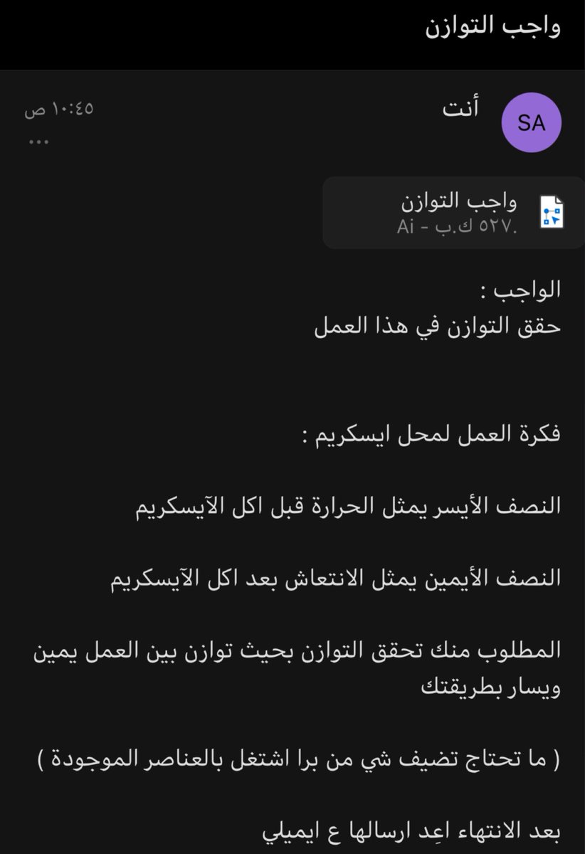 التمرين كان عبارة عن اعادة تصميم + مع تطبيق قاعدة التوازن 🤩💪🏻