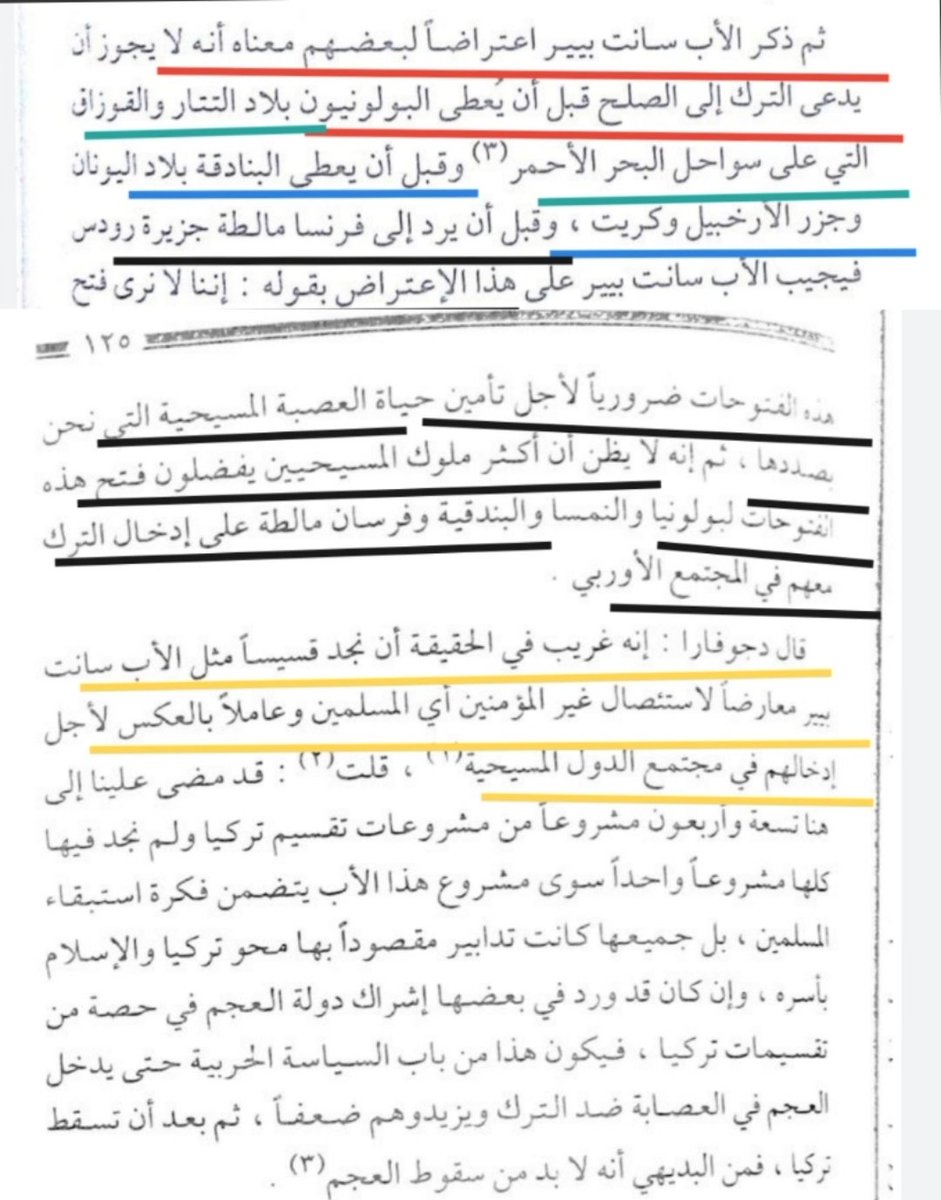 ويحارب المسلمين..... وإن من الواجب جمع كلمة المسيحيين وتفريق كلمة المسلمين)