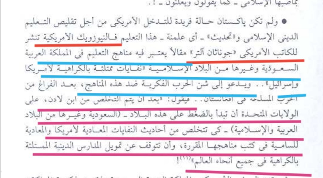 وكاتب أمريكي آخر هو جوناثان آلتر يهاجم فيه مناهج التعليم في بلادنا وينعتها بأقبح الأوصاف ويصفها بالنفايات الممتلئة بالكراهية للي8ود وأمريكا.... ويجب أن تقوم أمريكا بالضغط على السعودية كي تتخلص من الأحاديث والآيات المعادية للغرب... إلخ)