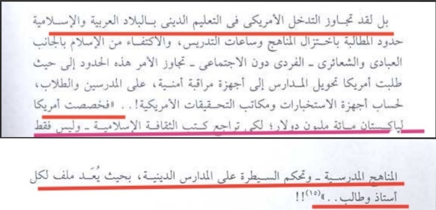 والعجيب هو تقديم السفير الأمريكي مذكرة للمملكة العربية السعودية يطالبهم فيها ب:(اختصار وتقليل ساعات تدريس العلوم الدينية