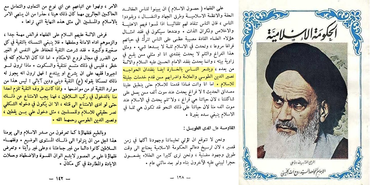 ۞#الخميني يثني ؏الخونة(الطوسي)و(يقطين)ويزكي تقيةالخيانة لإسقاط دول السنة