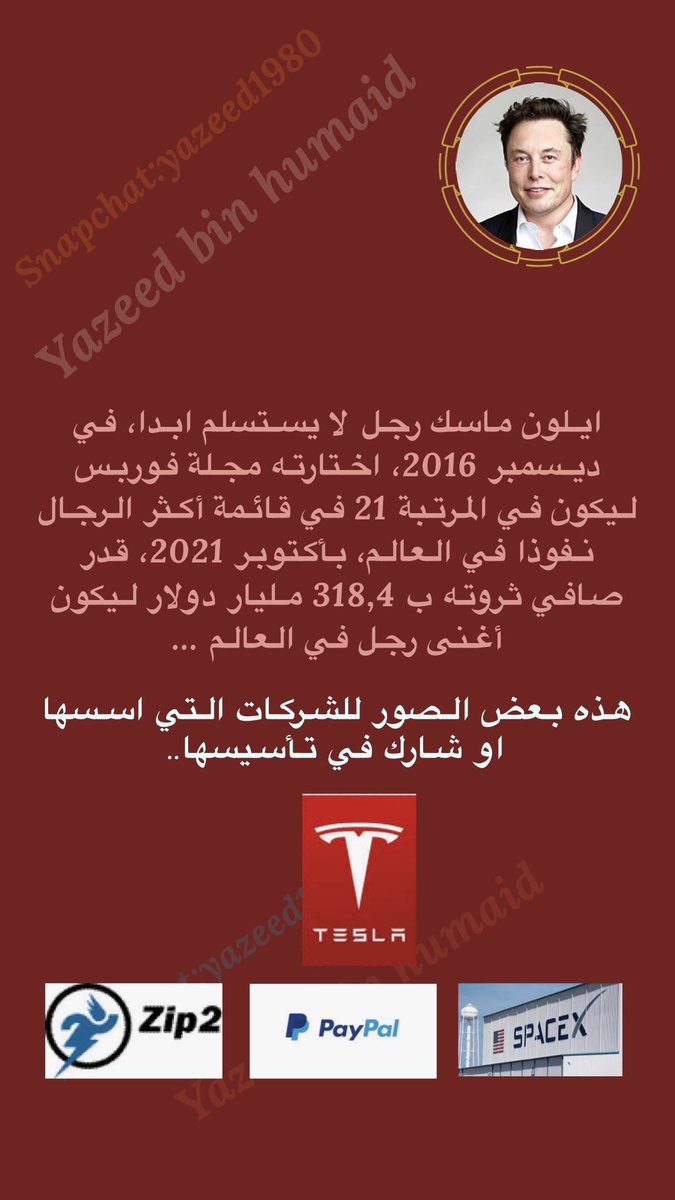 #مساء_الخير ثريد هذا الاسبوع عن هذا الشخص "ايلون ماسك" مؤسس ومساعد في تأسيس عدد كبير من الشركات، لديه طاقة خرافية بالعامية مايتعب1️⃣..